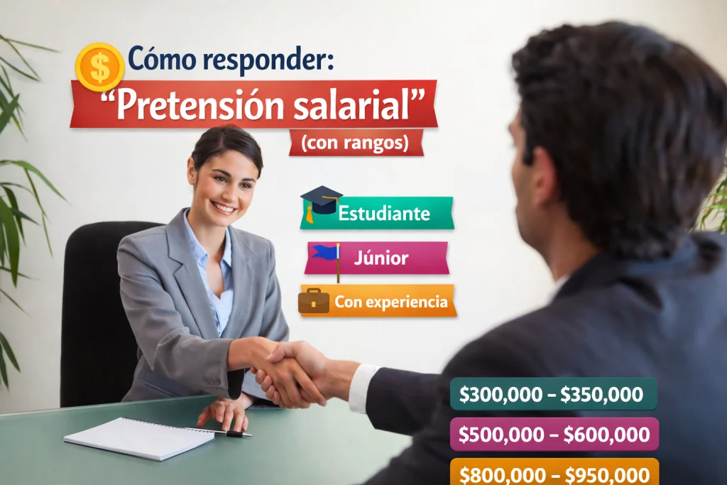 “Estoy iniciando mi carrera, por eso mi pretensión salarial con rangos es [X–Y], acorde al mercado para posiciones junior. Me interesa crecer y aportar, y puedo ajustarme según beneficios y aprendizaje.”